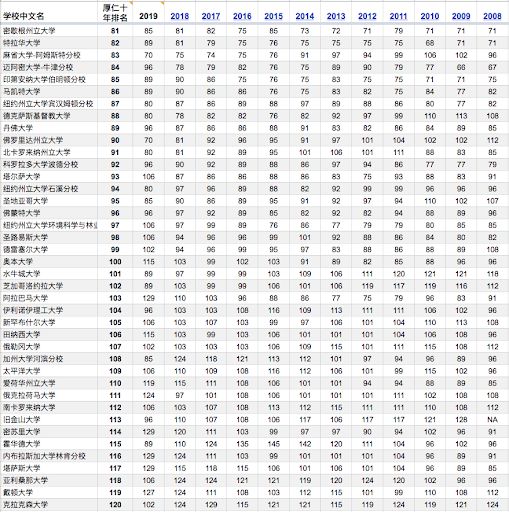新闻周刊全球排名,目标是考察看国际影响力和学术贡献,主要考察学校的学术产出。我也曾在多篇文章中分析过,这里也不再赘述。(相关文章跳转:最新2019新闻周刊国际排名和美国大学十年排名分析)