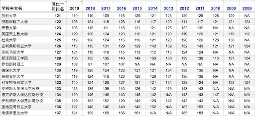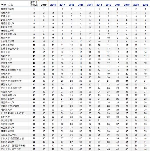 【美本精排榜】厚仁经过综合 US News十年排名,给美国大学做出的精确排名