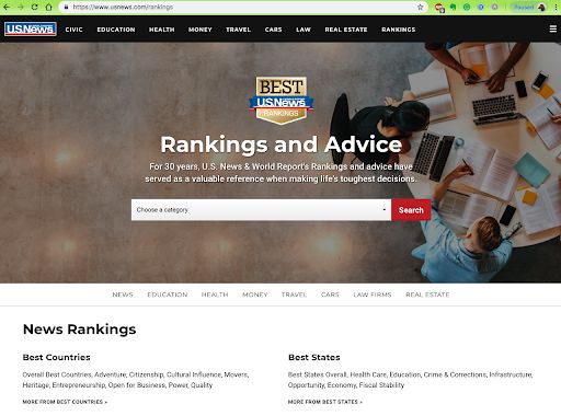 历年来,新闻周刊深感在美国无敌手,就又顺便把大学排名拓展到高中排名,线上课程排名,甚至是国家、州、医院、车股票、律所以及地产的排名等等。不禁让人咂舌,你又不是联合国,凭啥来给国家排名?排名高的国家就是好的移民国吗?这个问题其实和“排名高的大学就是好的目标院校吗”是同一个道理。