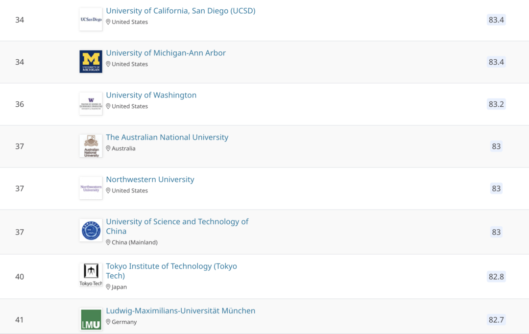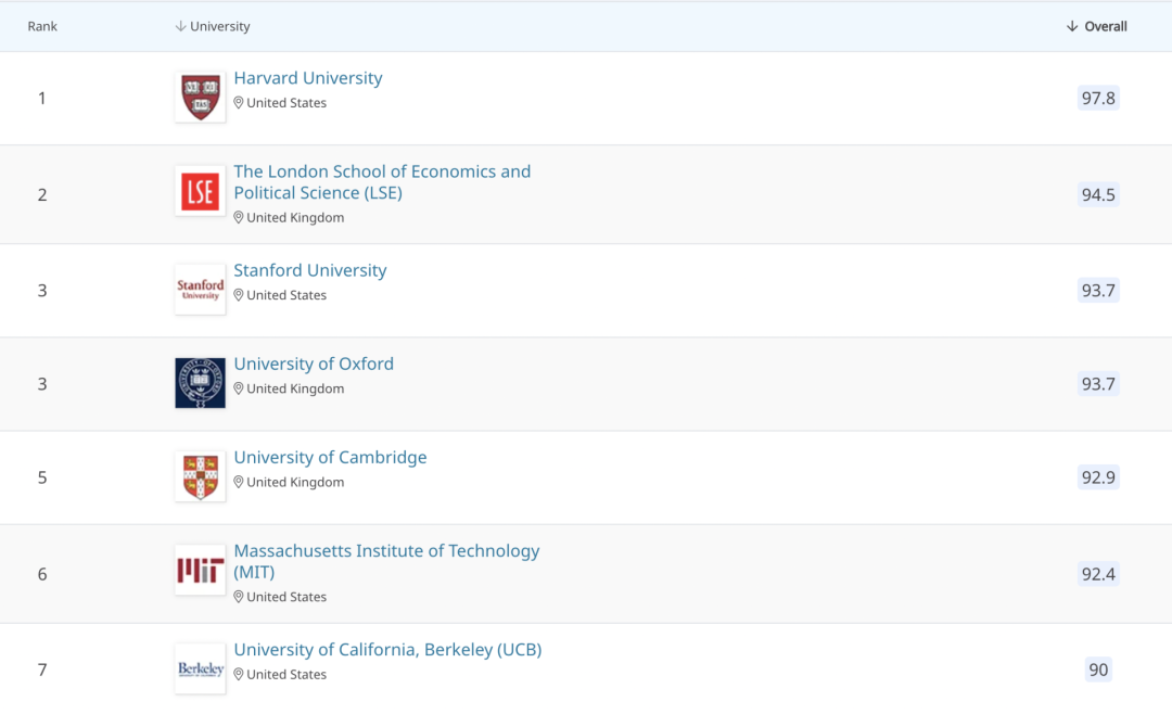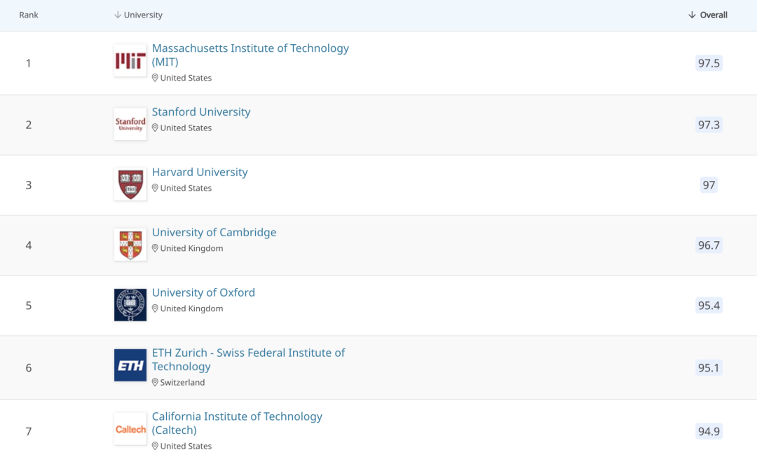 依旧毫无疑问地占据者榜单前列最多的名额,处于世界领先地位。而哈佛大学和麻省理工学院(MIT)位居榜首,——在十多个学科上均被评为世界上最好的大学。