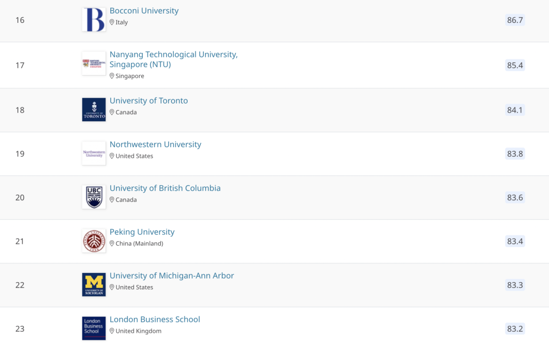 在今年的排名中,美国高校依然是最大赢家。今年有两所大学脱颖而出,哈佛大学和麻省理工学院(MIT)——在十多个学科上均被评为世界上最好的大学。毫不意外的占据着榜单前列最多的名额,在会计金融、生物科学、商务管理、计算机科学与信息系统、工程、法学、历史和医药方面依旧处于领先地位。
