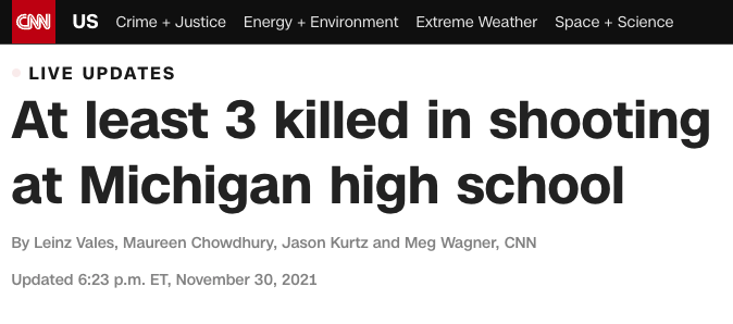“在演讲后我听说了密歇根学校的枪击案,我了解了所有的细节,我的心与失去孩子的悲痛家庭同在。”