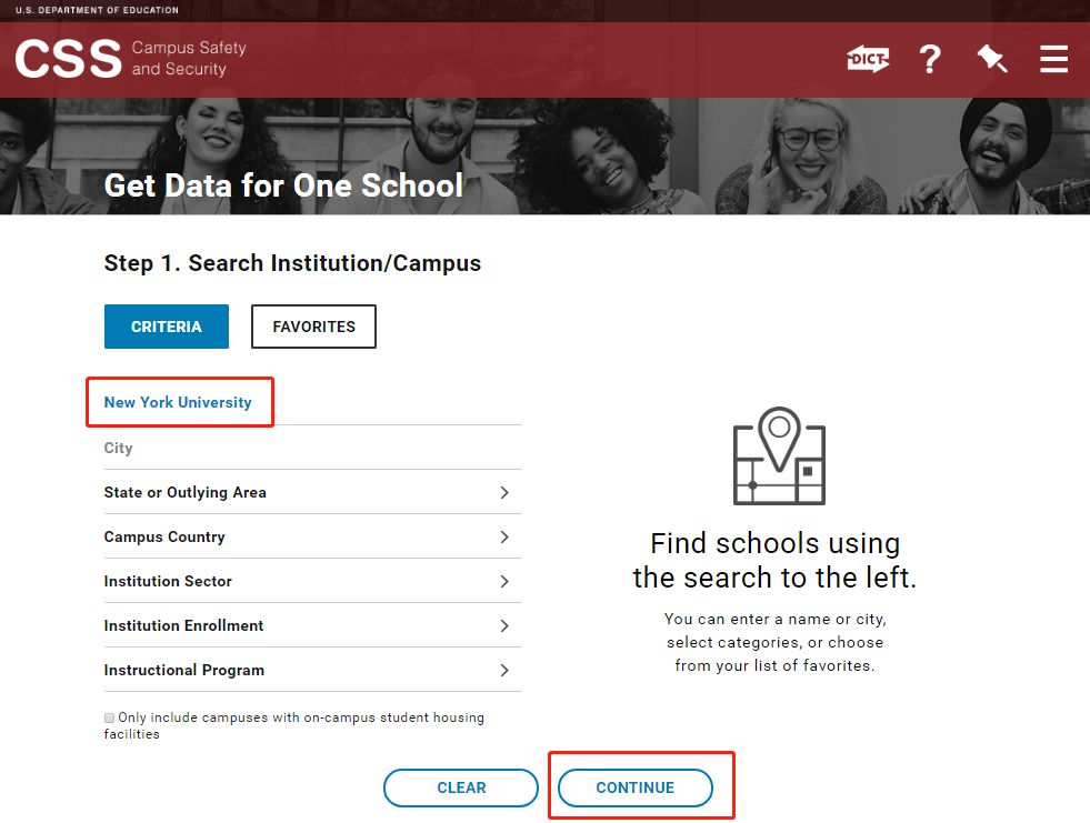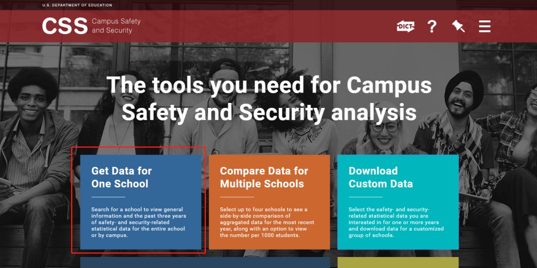 美国教育部网站Campus Safety and Security Data Analysis Cutting Tool,它不仅能查某一所学校的近几年来的犯罪率,还能直接查到学校的安全信息联系方式。