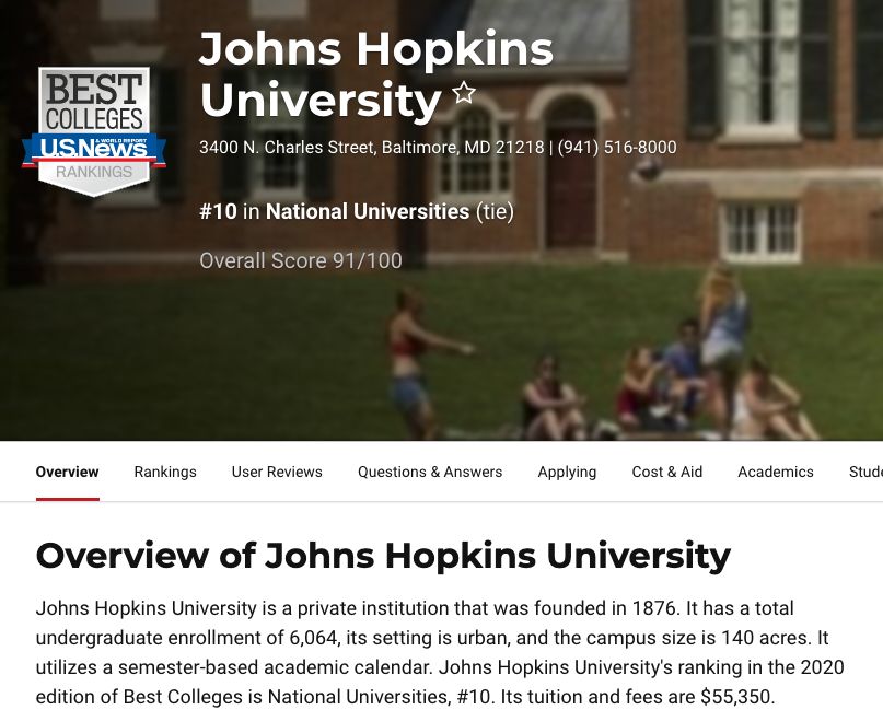约翰霍普金斯大学我就不多介绍了,上一篇里有提到过,感兴趣的朋友可以顺便读一读。