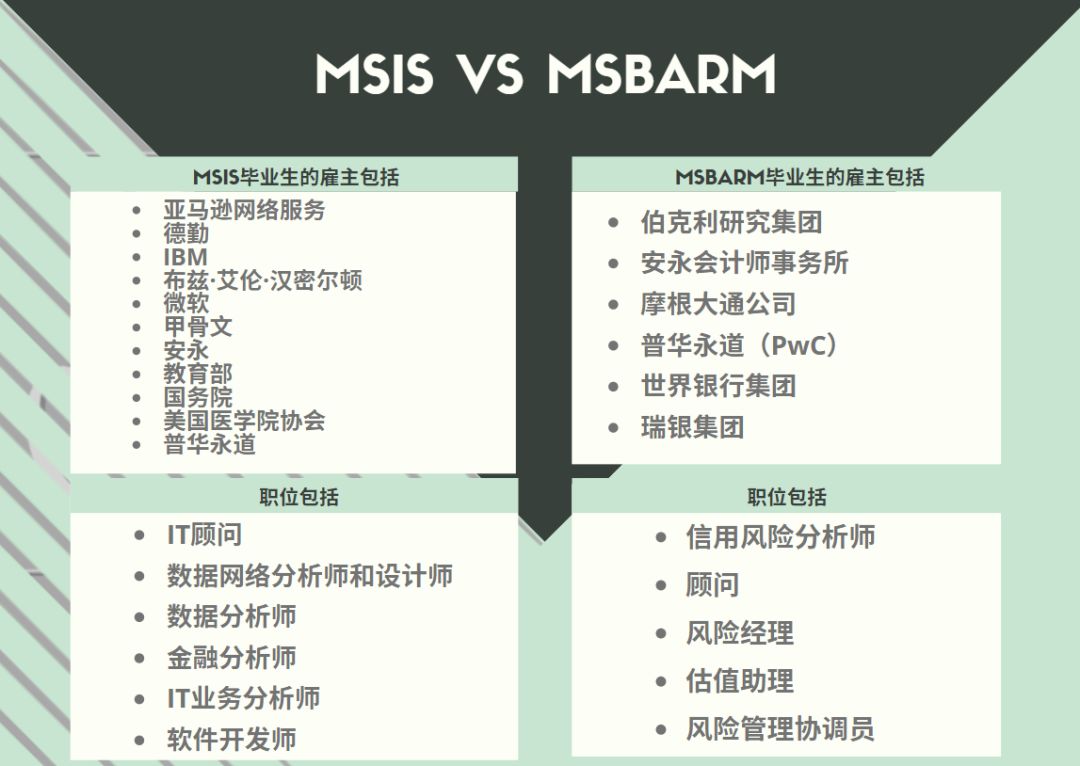 如果是想进入金融行业的学生,建议选择MSBARM专业,不论从课程设置还是未来就业方向来看都更加偏商务。