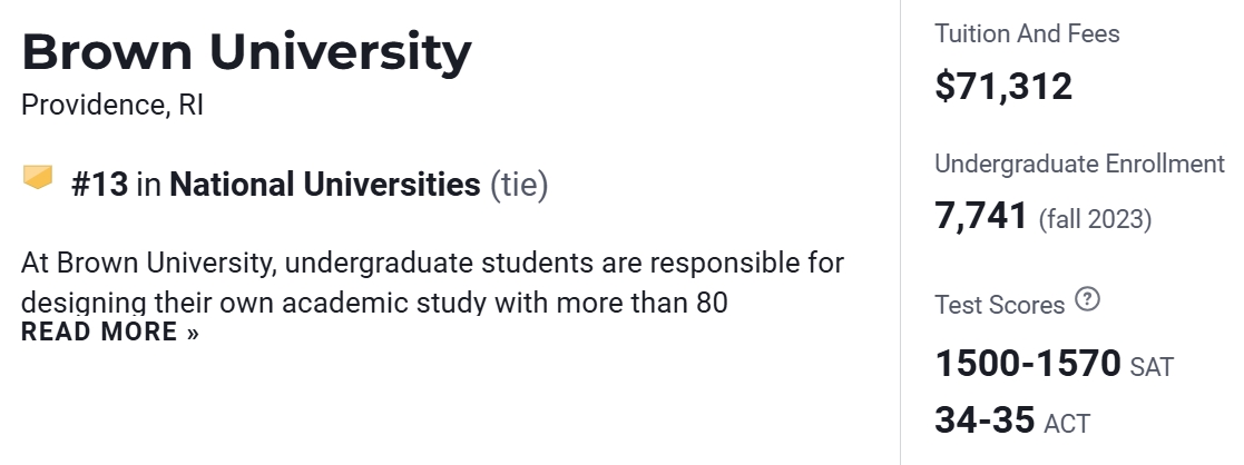 2025年USNews美国大学排名中,布朗大学大学排名第13。