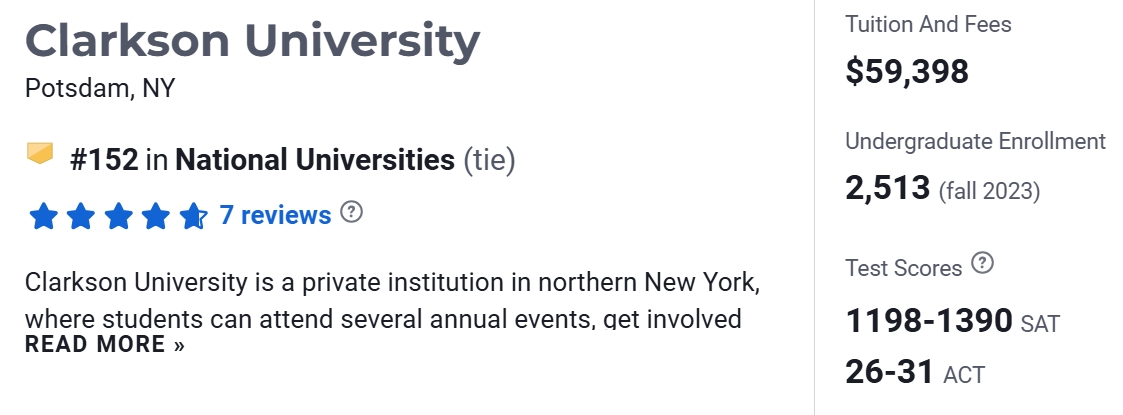 克拉克森大学 (Clarkson University,简称CU) 创建于1896年,是一所位于纽约州波茨坦,历史悠久的国家一级大学,也是美国最好的工程技术综合性私立大学之一。