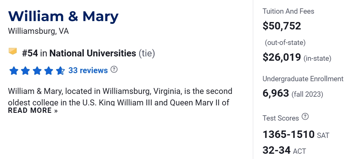 在2025 US News美国大学排名中,威廉玛丽学院位于第54名。