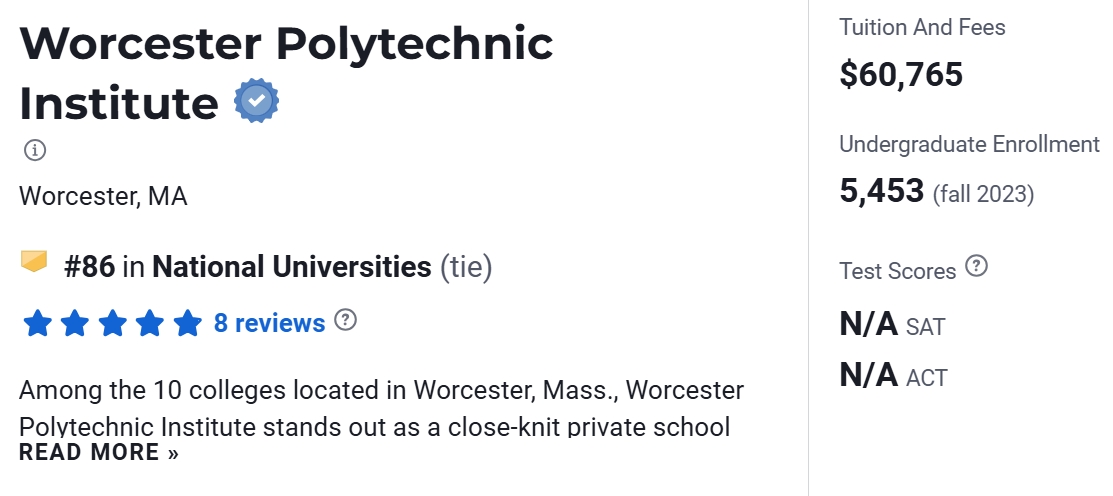 在2025 年USNews美国大学排名中,WPI排名第86。