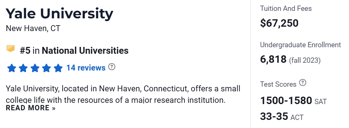 在2025 年USNews美国大学排名中,Yale排名第5。