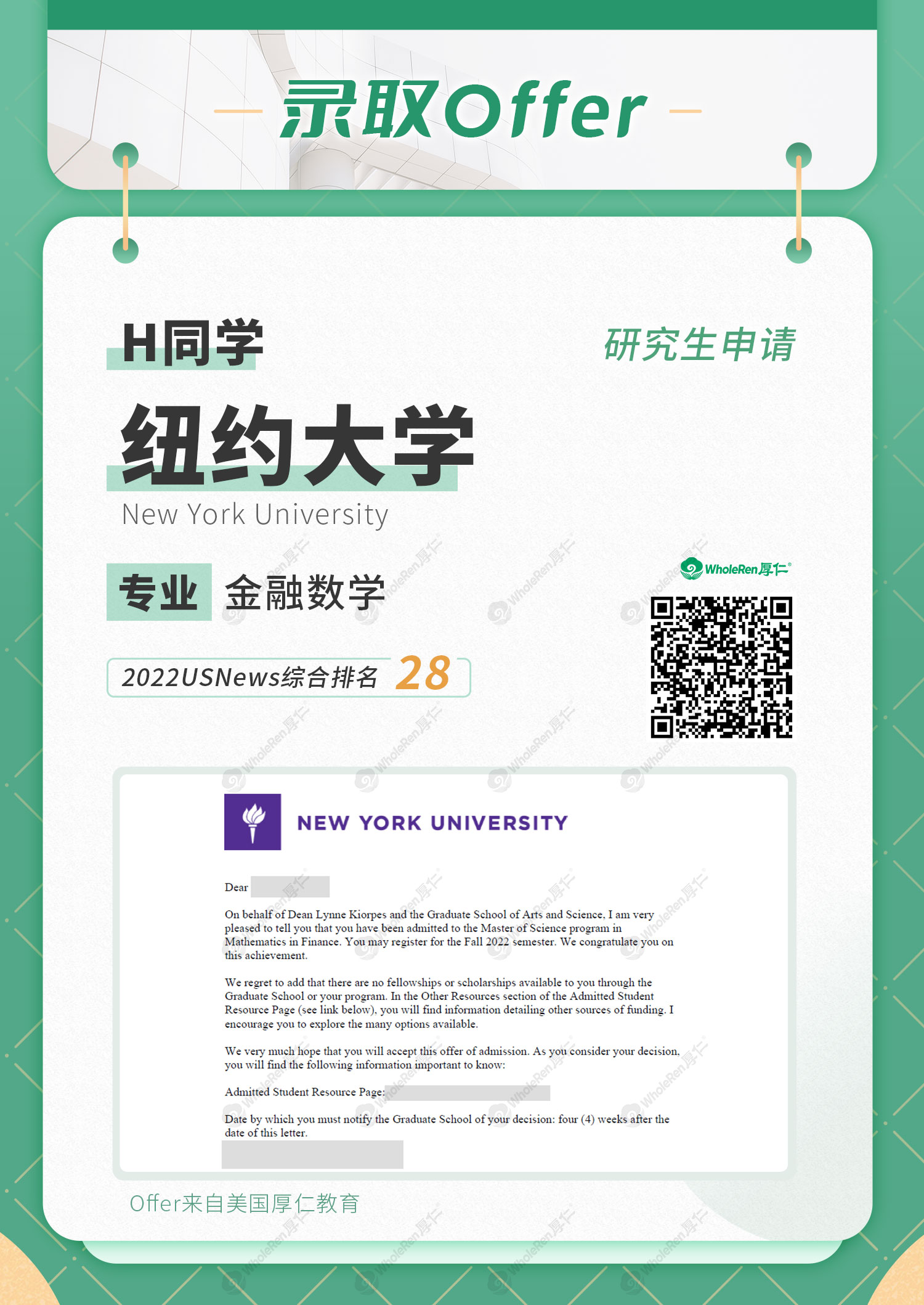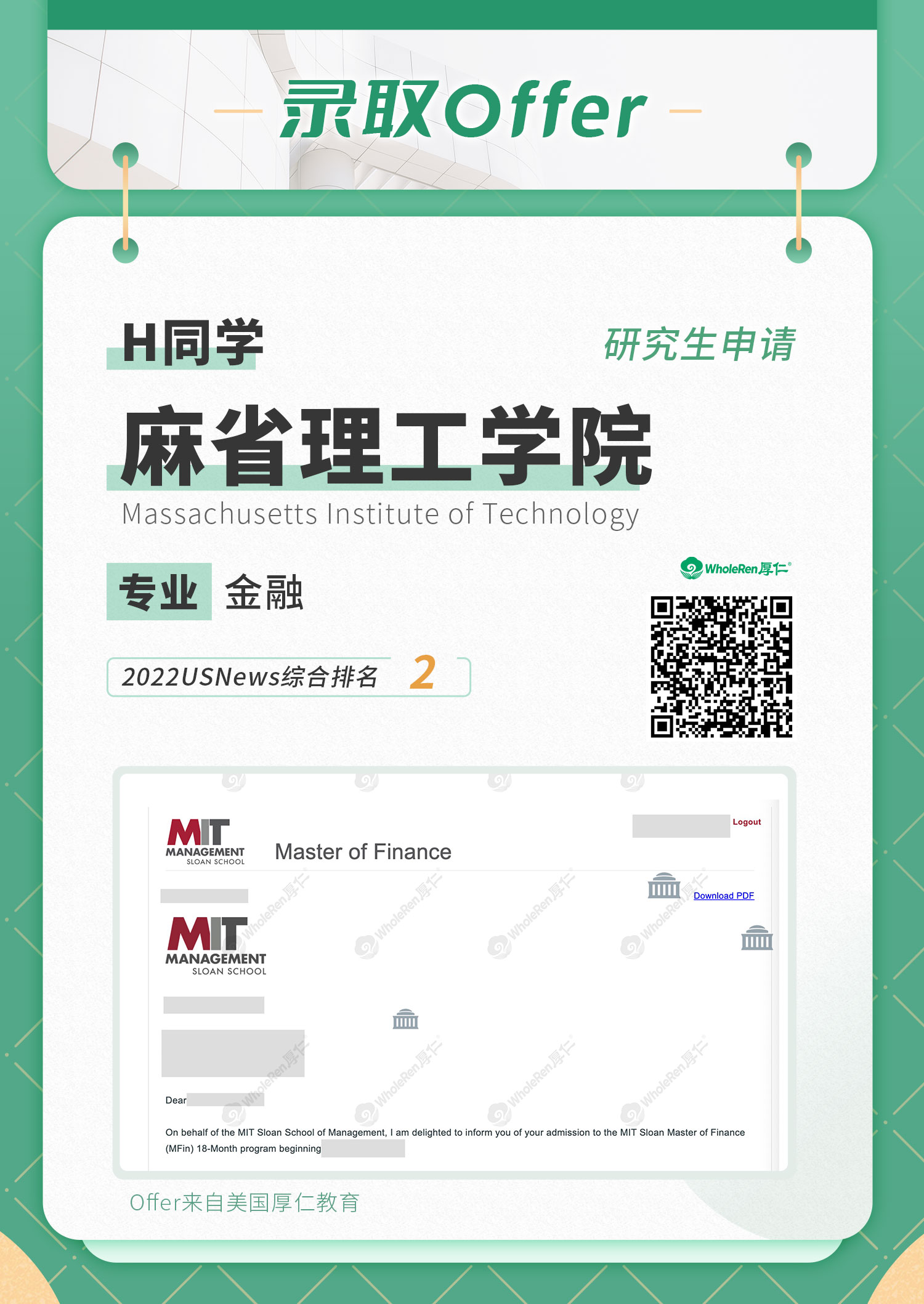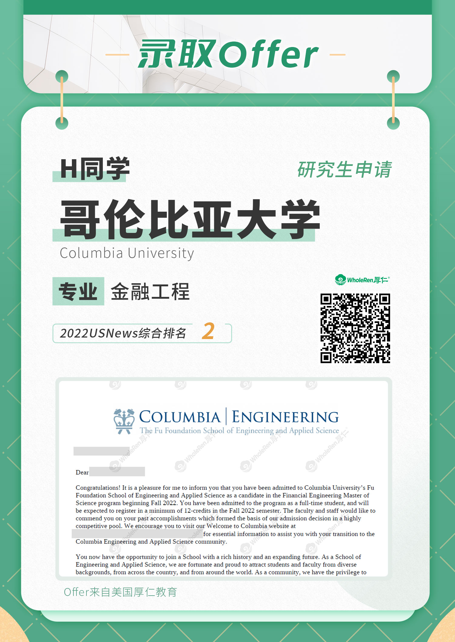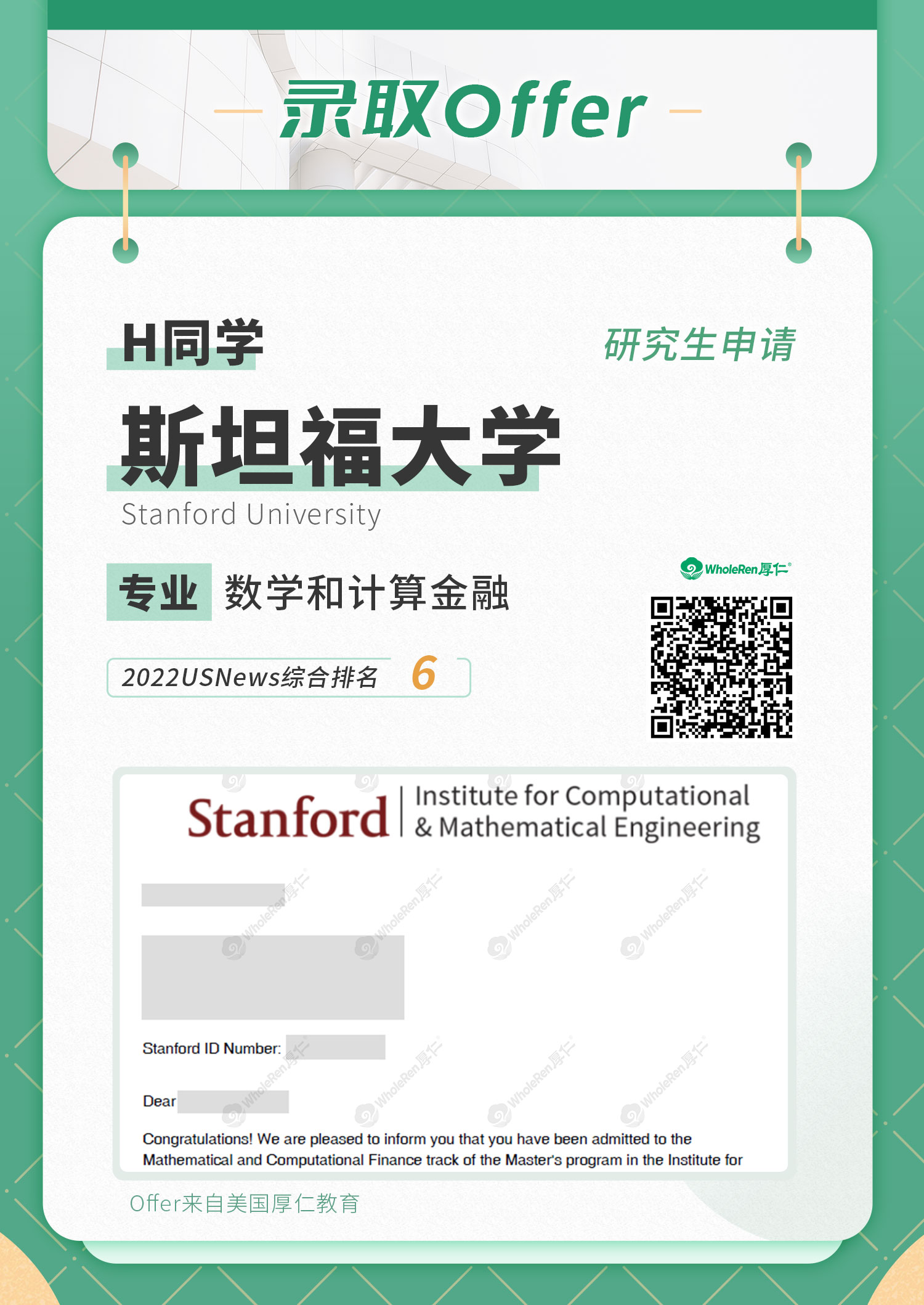 让我们欣喜的是,H同学收到了普林斯顿大学,MIT,哥伦比亚大学,斯坦福大学等TOP10名校offer!祝愿H同学在求学道路上扬帆远航!