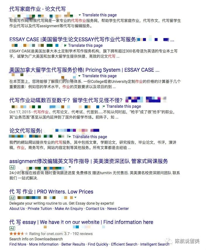 中国学生大举留学,美国的代写产业从2014年前后,兴盛起来。也出现了很多家专门服务中国学生的代写作业服务。如果直接搜索中文『代写作业』,有很多专门针对中国学生的美国公司会为其提供服务: