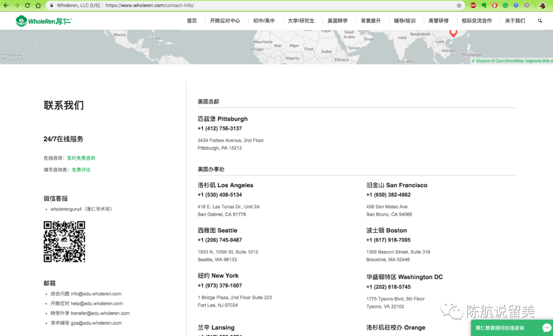 不是打广告哈,就是举厚仁网址做例子,因为很多美国的留学机构,也都借鉴过厚仁的网站模板。