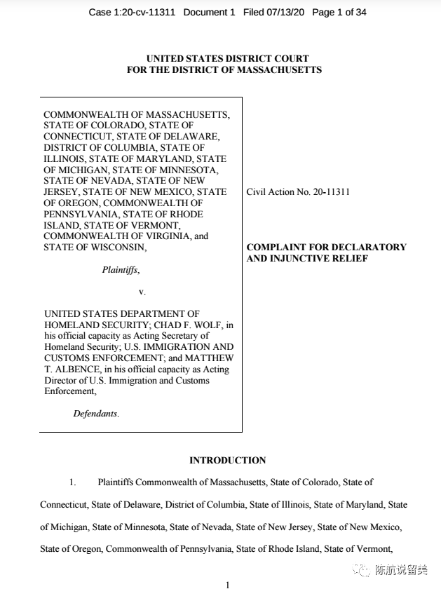 这是状子,原告一大堆,都是各个州政府,被告国土安全局的代理局长,
