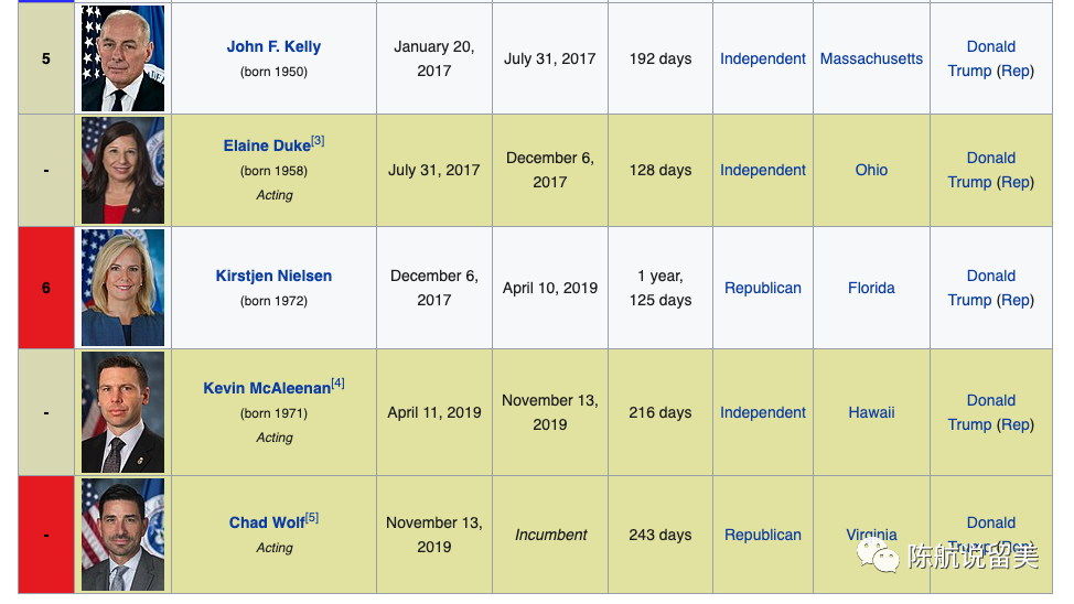 这是川普任上三年半,国土安全部的5个部长。每人的任期,大概200天。