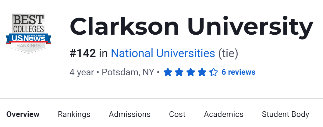 克拉克森大学 (Clarkson University,简称CU) 创建于1896年,是一所位于纽约州波茨坦,历史悠久的国家一级大学,也是美国最好的工程技术综合性私立大学之一。