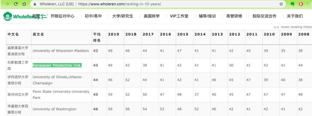 我们就拿伦赛勒理工大学(RPI)举例,该校在厚仁十年排名中为第43名 ( //m.zhlymy.com/ranking-in-10-years/)