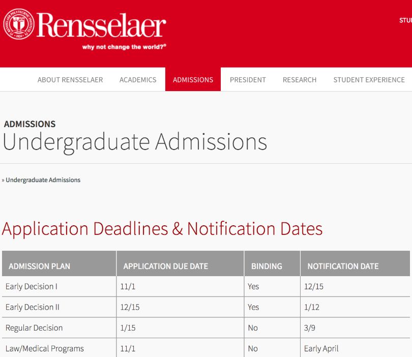 伦赛勒理工大学(RPI)早决定申请截止日为11月1日,决定日是12月15日。别的大学的申请流程还没有开始呢,RPI的录取都已经到了。