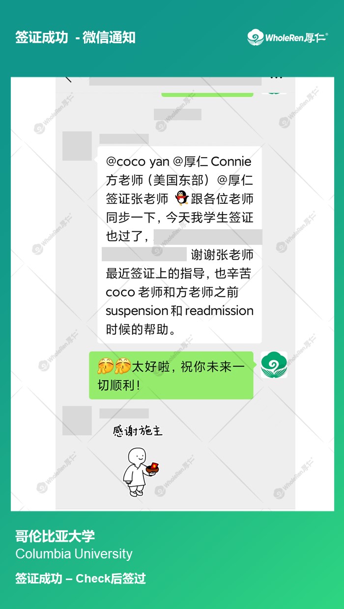 专家老师在了解学生的情况后,指导学生准备面签材料,并针对自己在学业上的记录做出合理的解释,面签被check后顺利拿到签证。