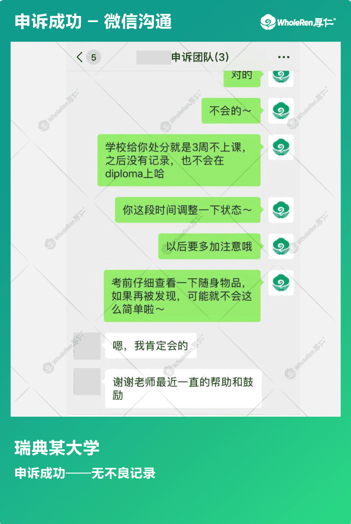 专家老师通过与G同学的沟通,寻找到申诉突破点,证明自己没有作弊的动机,老师相信了G同学的陈述。最后学校决定让G同学停课3周,无不良记录。
