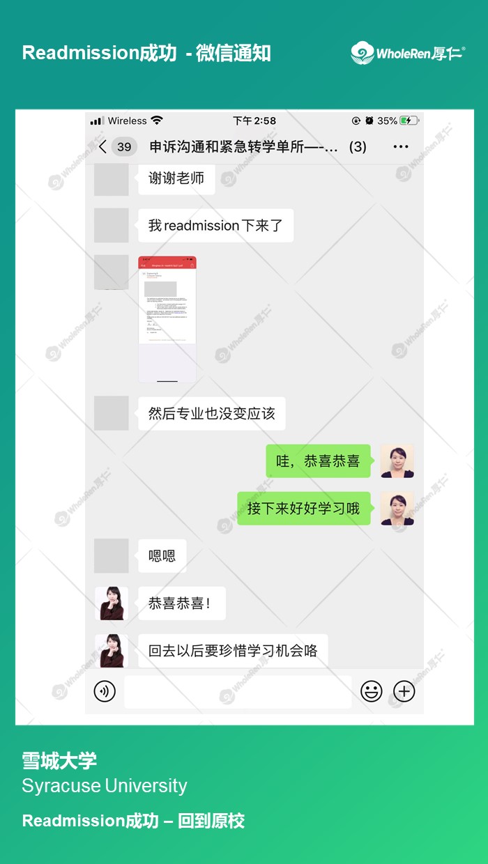 之后专家老师指导学生开始准备Readmission申请材料,完成优质申请信,最终M同学成功Readmission回到了原校。
