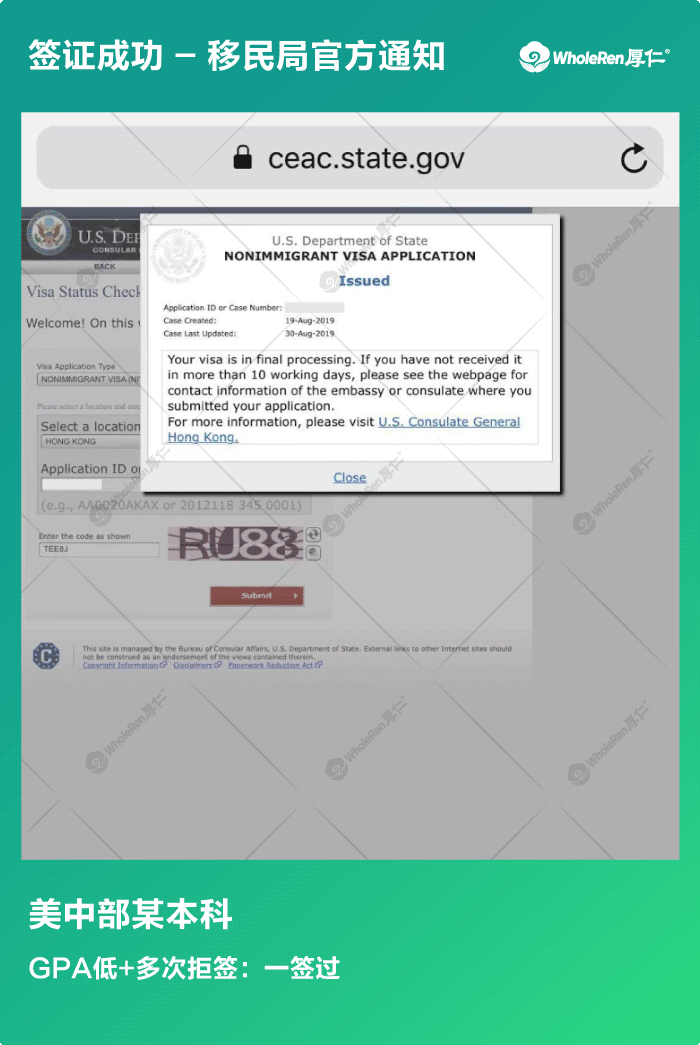 专家老师通过X同学的学习经历以及面签经历帮助X同学制定了签证计划,并且指导学生整理了支持性材料证明学生的学习能力。在全面的指导下,X同学一签通过!