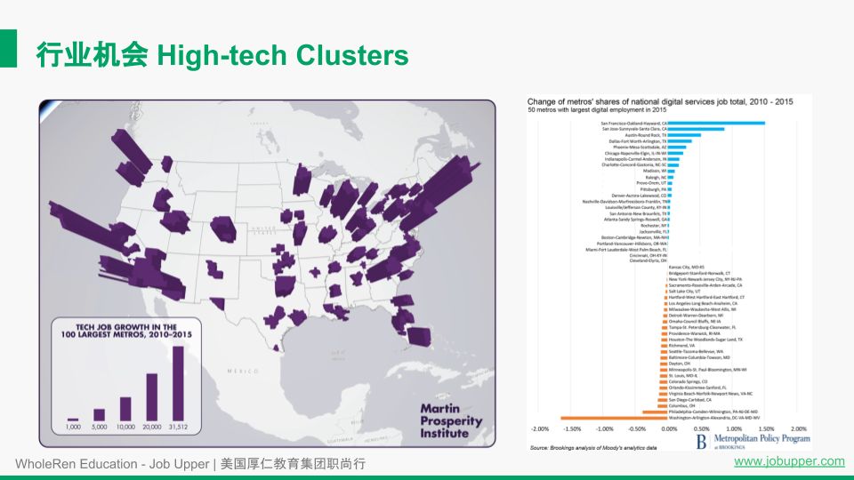 地域分布:纽约、波士顿、芝加哥、西雅图、洛杉矶、旧金山、奥斯丁、亚特兰大等沿海大城市拥有更多的就业机会。