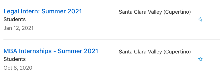苹果也去年就提前发布了暑期的信息,包括市场、管理、法律、产品设计、销售和软件工程师等,甚至官网7月开始就发布了2021年暑期全日制实习的岗位,但到现在也还没撤销,说明还是在看适合的候选人,大家也可以去投投看: