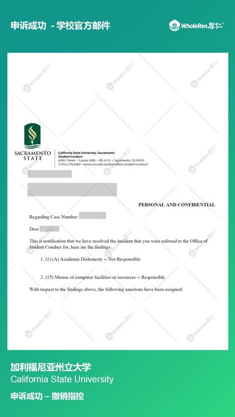 专家老师指导顺利化解危机,撤销、减轻处分!帮助多次作弊抄袭记录、面临永久开除的学生成功申诉!不管多难的困境,学术紧急应对成功率100%,极端案例申诉成功率高达93%。24小时在线咨询>>