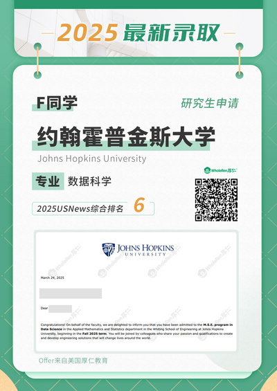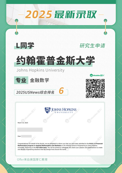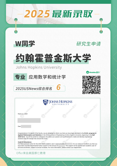 录取 塔夫茨大学 Tufts University, 约翰霍普金斯大学 JHU