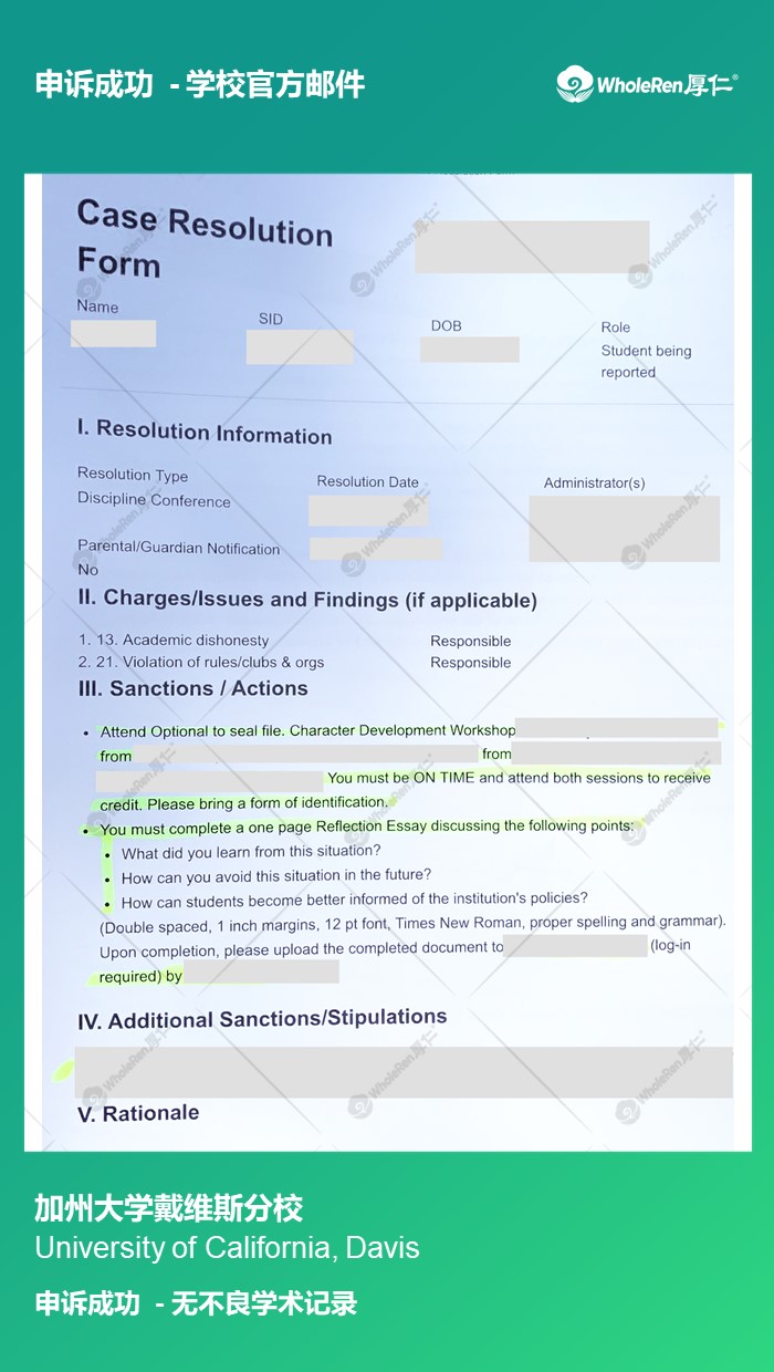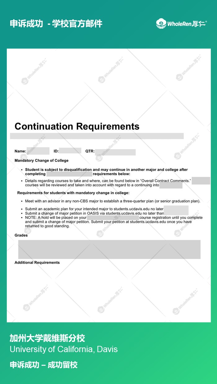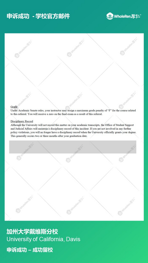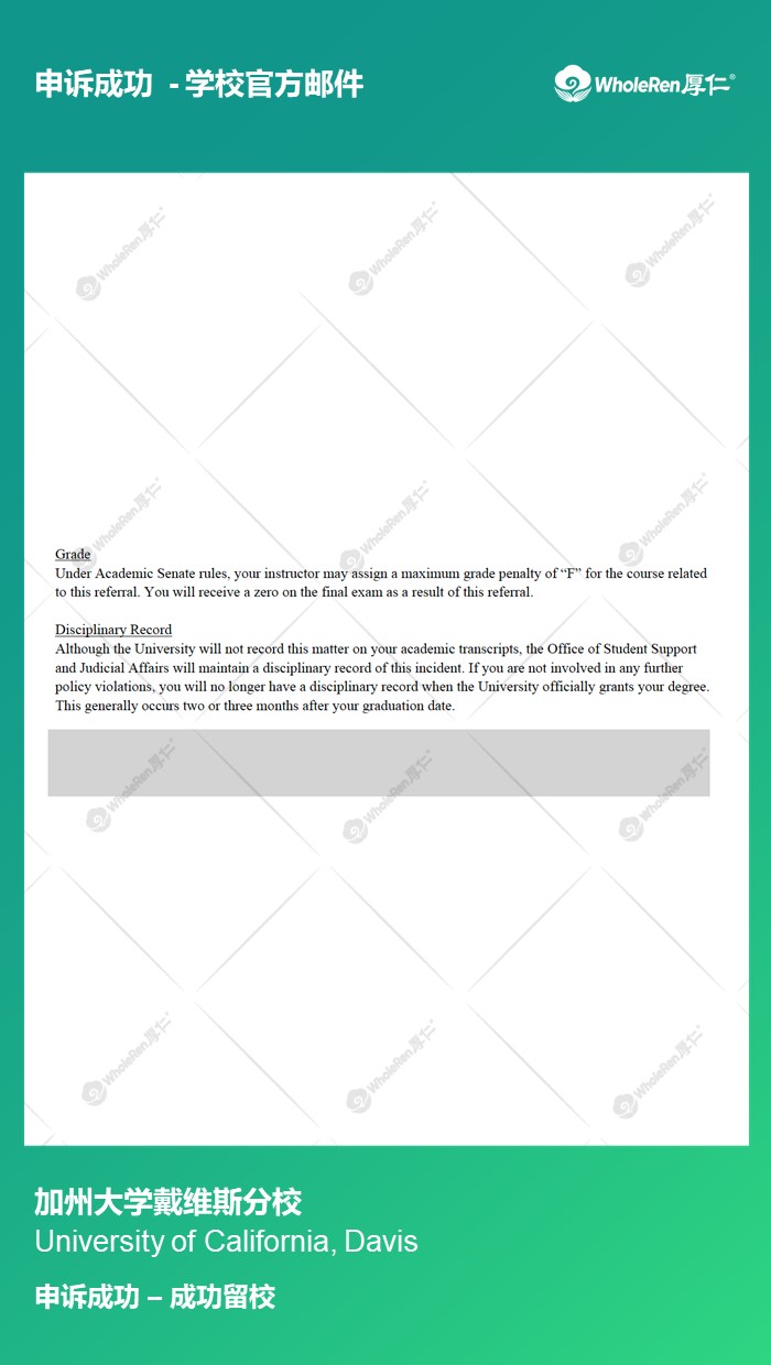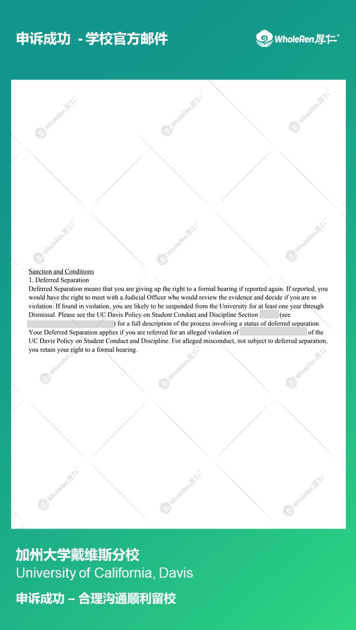 在美国大学,如果学生成绩持续不达标或有违纪行为将会受到相应处分,学生有权根据学校政策进行申诉,来减轻/撤销处分。查看 UCD申诉 专题 >