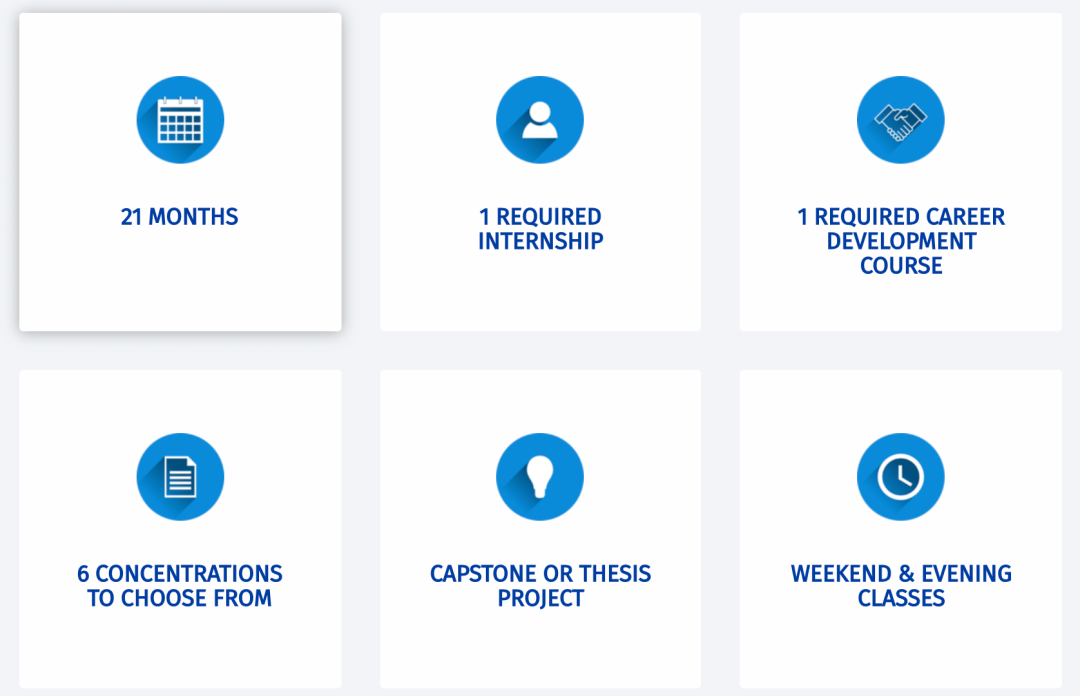 MBA项目的学生要学习20门课程,共80个学分。课程有六个主要组成部分。