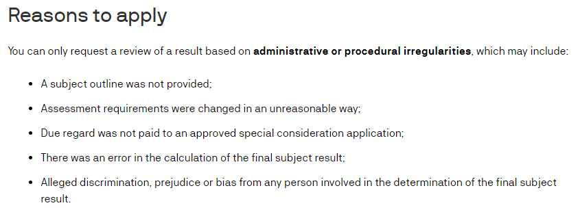 为了保证每一位学生的成绩都公平公正,悉尼科技大学允许学生在有合理理由的情况下对自己的学术成绩进行申诉。如果学生认为自己的成绩存在以下问题,都可以提交申诉请求:
