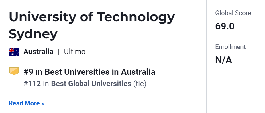 2024年,UTS位列U.S. News全澳第9、世界第112位。